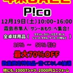 12月19日(土)霧島市サンあもりにて P!co初となる『P!co2020年末SALE』と題して 出張販売会を実施させて頂きました!
